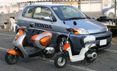 昼食後 各々、アイドリングストップ機能の体験や、モータ付モペット試乗、