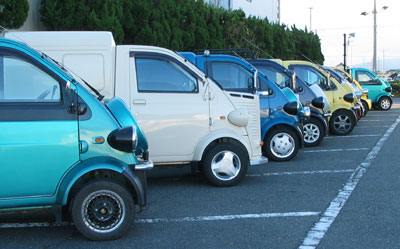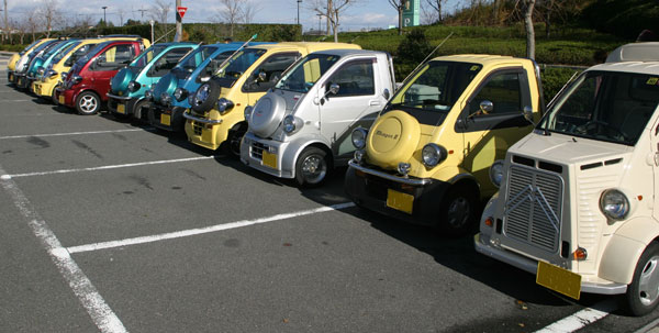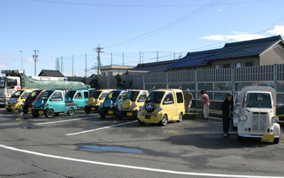 駐車場に集結。 右端の2台がお店のミゼだそうです。
