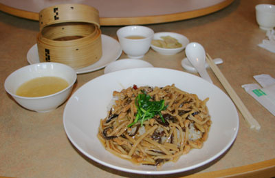 きくらげと豚肉のあんかけご飯、焼売、ザーサイ、とうもろこしスープ付き