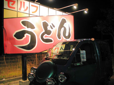 19:00 今治IC近くのセルフうどん店にて夕食