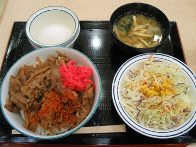 松屋の牛めしセットで朝食。