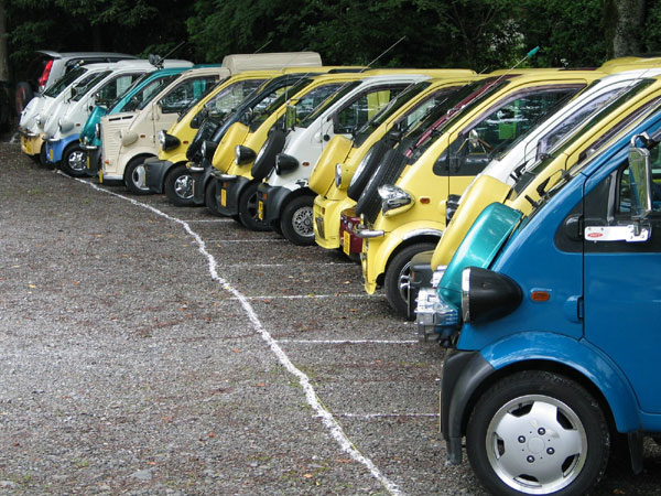 ほどなく駐車場に到着。10台分のスペースに14台が駐車。