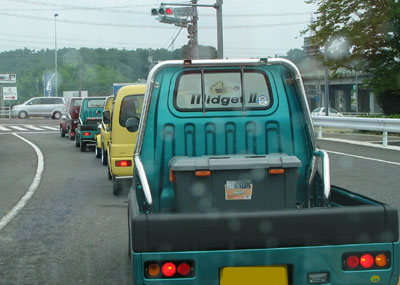 名古屋ICまで、3台の隊列走行で移動。途中雨が強く降っていました。