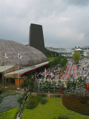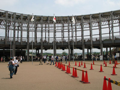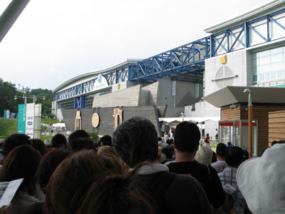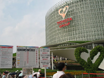 日立館180分待ち。豊田館140分待ちの現実・・・。外観だけ写真にとっておこう・・