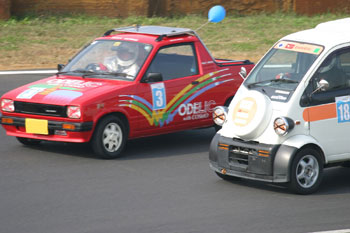 オフ会のメインイベントである、チャレンジEVミゼットII第4戦は