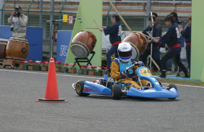 ERK(EVカート)にて、和太鼓のリズムに合わせて1分間如何に華麗な走りが出来るか競います。