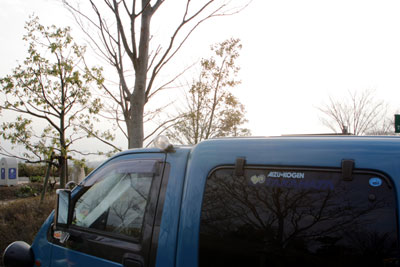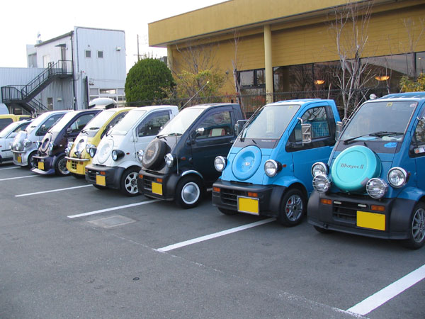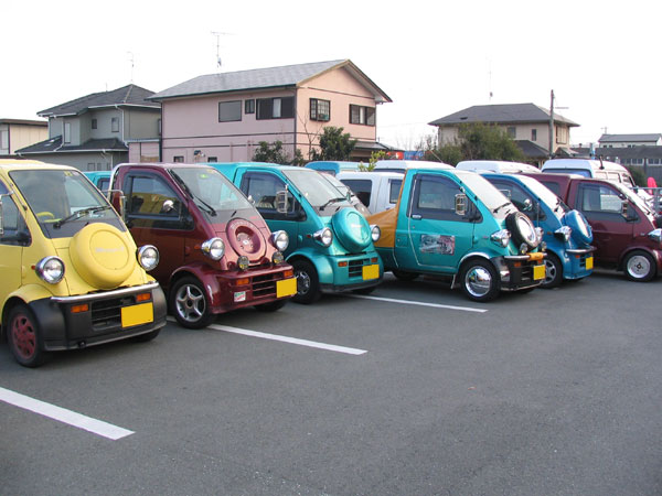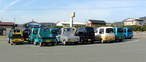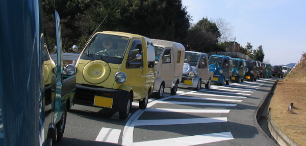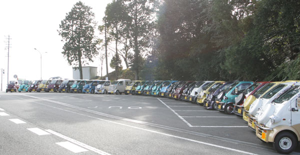 駐車場一角をお借りして、26台のミゼが整列駐車しました。
