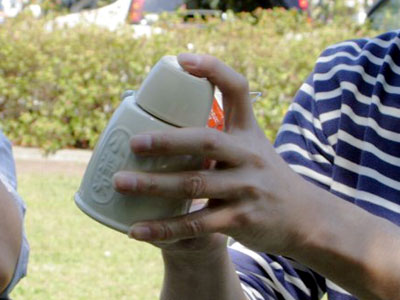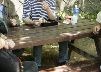 見学も一段落し、日差しを避けて昼食休憩