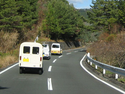 段々畑の中をまったりと走り抜ける様はバックミラー越しに見ても壮観です。