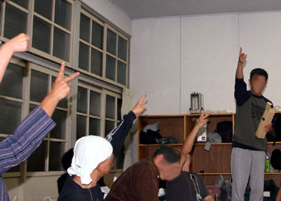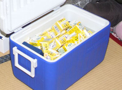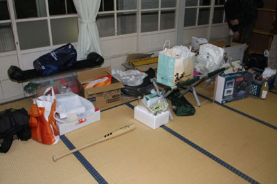 後片付け後、布団をひいて就寝準備。その後は2次会。
