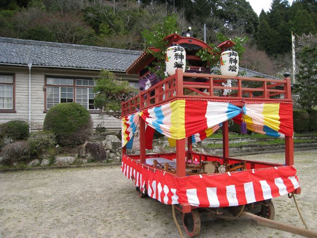 昼頃からのイベントに向けて、校庭では山車が準備中。