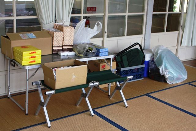 後片付け後、布団をひいて就寝準備。その後は2次会。