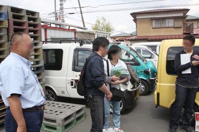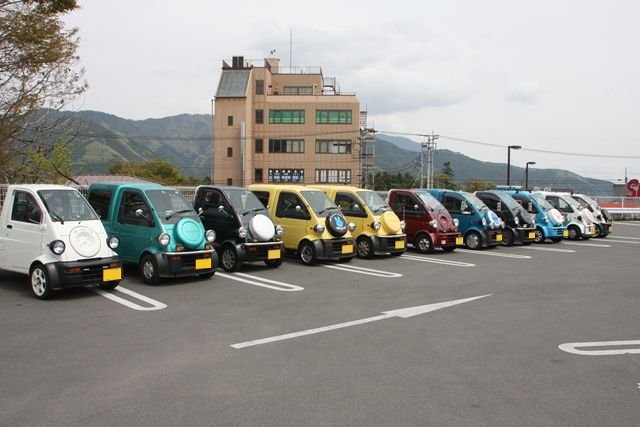 11台での隊列走行により、富士吉田駅前の駐車場に駐車。
