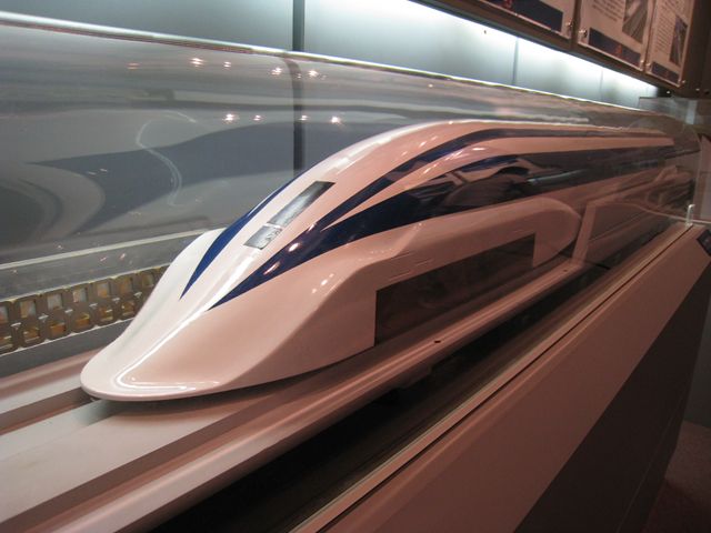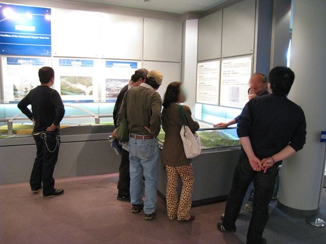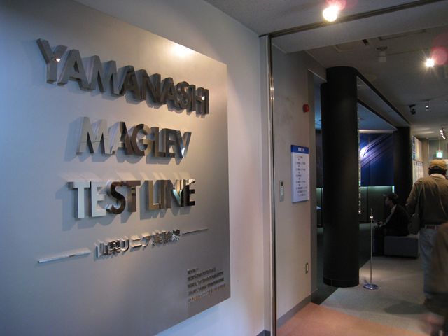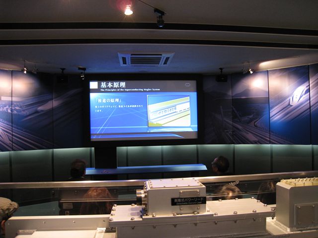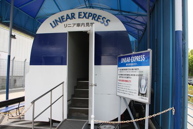 リニア車両のモックアップ。内部見学時に紹介ビデオを見ることができます。