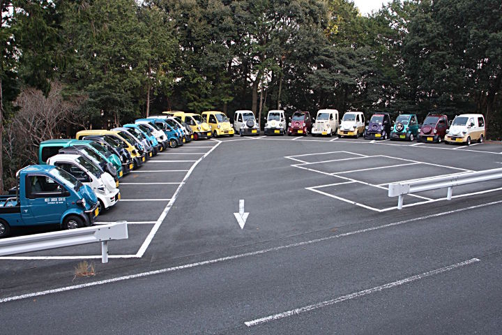 施設側でまとめておけるように配慮していただいた駐車場にミゼ詰め駐車。