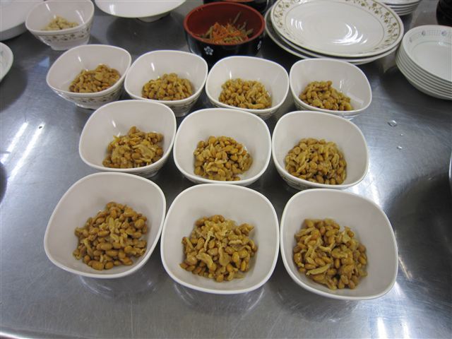 8:00頃から朝食の準備がスタート。お約束の納豆。
