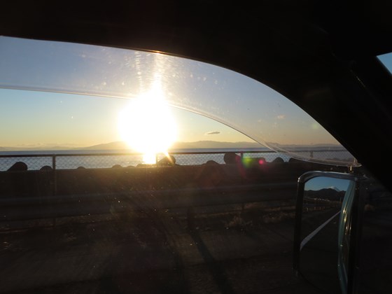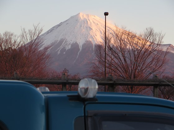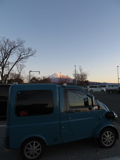 富士川SAにて朝焼けの富士山鑑賞