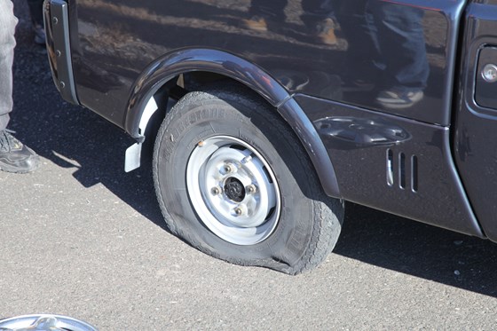 ここで、アルフレッドさんの右側後輪がパンクしていることが判明