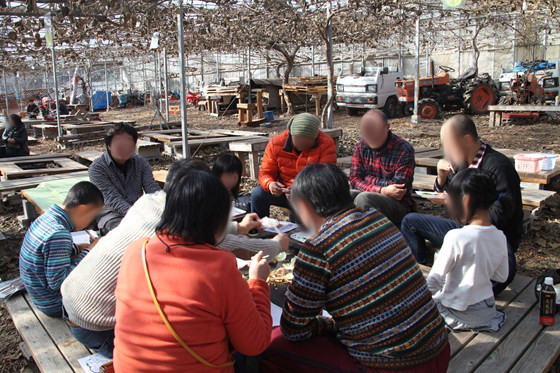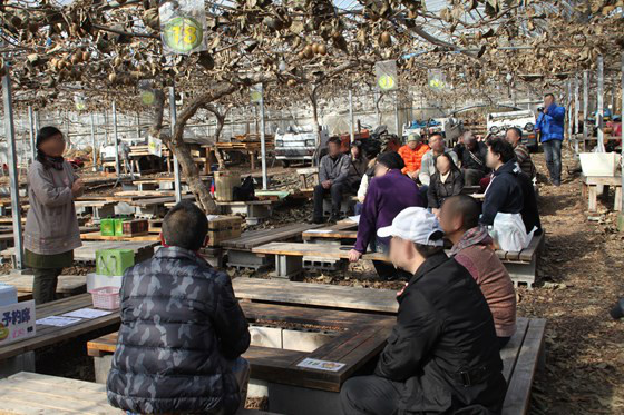 キウイが栽培されているハウス内に移動