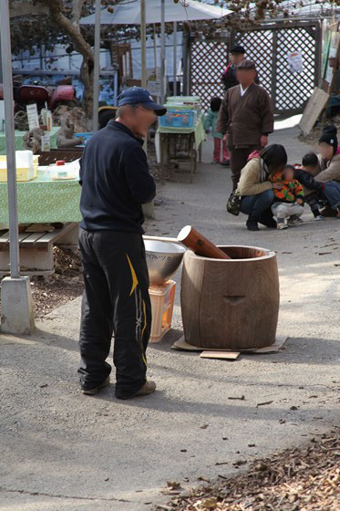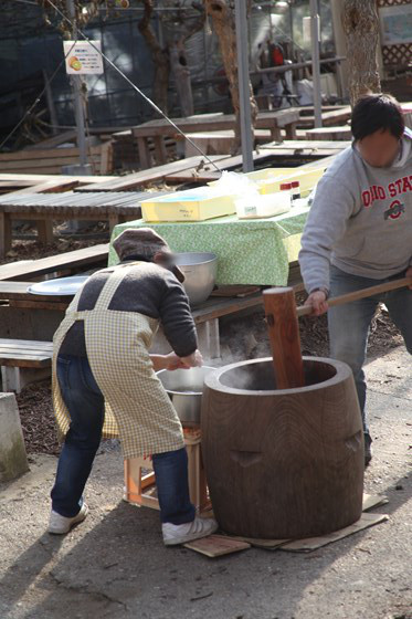 園内イベントの餅つ