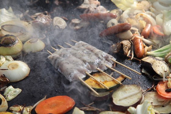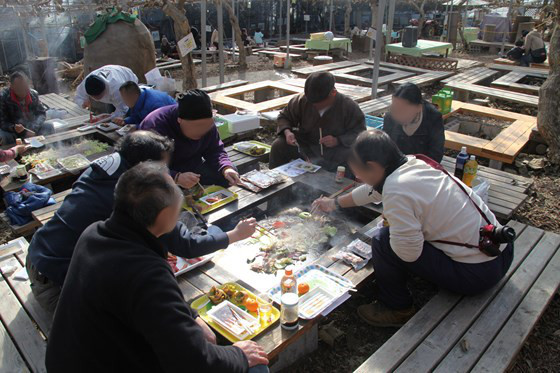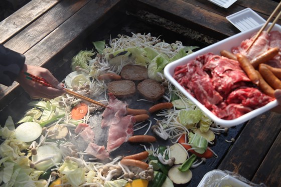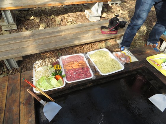 園内に設置されているテーブルにて事前予約したBBQ(2160円)の昼食