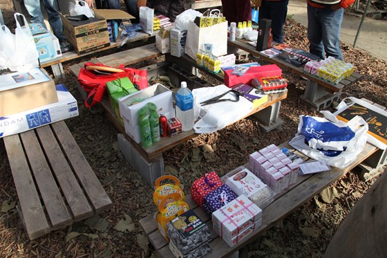 産直品配布&お宝じゃんけん大会に向けて、商品が集結中