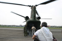 大型ヘリCH-47Jに搭乗して5分間の地上滑走(といいつつ30m位は浮いていますが・・・)体験です。