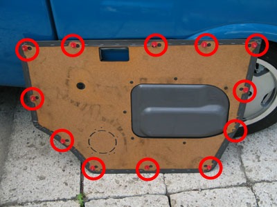 -3 内張り外し等を使い、クリップ(12箇所)を外していきます。